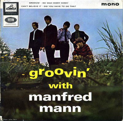 Hubble Bubble reached a very respectable no. 11 in the UK charts, but it was the third 45 of '64 that made the band a household name. Brill Building composers Jeff Barry and Ellie Greenwich had written Do Wah Diddy for American vocal group The Exciters a year earlier, but it had made no impact in Britain . Manfred Mann added some kettle drums and an extra “Diddy,” and amazingly took the song to the top of the charts, in the UK , USA , and Canada . It was coupled with another Jones/Mann number, the punky What You Gonna Do . With snarling lyrics and stuttering organ solo, this wouldn't have seemed out of place from almost any American garage band of the day, and what it lacks in sophistication it more than makes up for in intensity, though it does make a rather strange bedfellow for the innocuous A-side. After a brief tour of the States to capitalize on the single's success, The Manfreds returned home to release one more single in '64, and again it was a cover of a song by an American female vocal group that had flopped the first time round. This time the band took The Shirelles' Sha La La , switched the rhythm from a shuffle to an upbeat stomp, and bought themselves a no. 3 chart hit in the UK , also making no. 12 in the US . And for the first time in since their debut release, the flip side was also a cover, a version of the Leadbelly Folk/Blues standard, John Hardy with martial drums and the inevitable maracas. Though well performed, it possesses nothing like the power of the three previous Jones/Mann compositions, and seems a little “square” by comparison. 1964 also saw the release of the band's first LP (long player) The Five Faces of Manfred Mann. It contained the three previous excellent Jones/Mann B-Sides, three more new originals, and eight covers that ranged between Jazz, Blues, Soul and Rock'n'Roll, displaying the band's musicality and versatility. Of the originals, the finest is Paul Jones ' Don't Ask Me What I Say which comes from the same neighbourhood as Marvin Gaye's Can I Get A Witness but maintains its own identity with a strong hook and a convincing sax solo. Mike Vickers ' sax turns up trumps again on a cover of Cannonball Adderly's Sack O'Woe which allows the band to display some very creditable Jazz chops, and there's more fine playing from the ensemble on the boogie-woogie instrumental, Mr. Anello . It's Gonna Work Out Fine drops Ike Turner's heavily tremolo-ed guitar riff and the question-and-answer vocals in favour of a smoother approach, and once again the lads plunder the American Soul charts for a cover of the Tams' Untie Me , which sits in the same groove as Arthur Alexander ballads like Anna and You Better Move On . There are several very acceptable Blues covers, including an enthusiastic I Got My Mojo Working , and a Smokestack Lightning which retains much of the loping beat and feel of the original. Powered by Jones' strong harp and vocals, it stands up very well against the better-known Yardbirds version, but for me the best of the bunch is Bring It To Jerome. The combo's performance is every bit as insistent and exciting as Bo's, and with only two chords on the piano, they completely transform the middle 8, giving this version much more Mann appeal! The Five Faces showed surprising musical maturity and breadth of range, and consolidated the quintet's position in the UK by reaching no. 3 in the album charts. The band took a further opportunity to dip into their Blues book with their next EP release, Groovin' With Manfred Mann . The title track, Groovin' , written by Ben E. King and James Bethea, kicks off at a lively pace with a Ray Charles feel, and features some hot piano and cool vibes. Mike Vickers ' guitar is somewhat tepid by comparison, though as he allegedly learned to play the instrument in only a fortnight, after he joined the band, perhaps that's unsurprising. The same song was later adopted as an anthem by heavy rockers Led Zeppelin, though in radically dissimilar style. The two new Paul Jones compositions here are equally grounded in R&B, and I Can't Believe It follows the same pattern as Howlin' Wolf's 44 , featuring good organ and harp work and some Little Richard-ish falsetto. With harmonica to the fore again, Did You Have To Do That is a pleasing slow blues around an unusual 8-bar sequence with an amusing hook, pushed along by some nice rolling electric piano, and the disc is completed by a reprise of Do Wah Diddy Diddy. The quintet's formula of picking out overlooked American Soul songs continued to serve them for the first single of 1965, Come Tomorrow . On their cover of this tuneful 1961 Okeh release from Marie Knight, the band manages to equal the orchestral power of the original, with tasteful flute from Mike Vickers and dramatic piano work from Manfred Mann himself, producing a surprisingly sophisticated and polished piece of pop. On the flip is What Did I Do Wrong , a warm and relaxed 12-bar penned by Tom McGuiness . It begins in a conventional Chicago Blues style, featuring reedy organ and sparse but effective guitar work, while occasional voices interject in the background. As the song progresses, vibraphone and saxophone solos shift the style more towards Jazz, and the voices in the background build to a cacophony of echoing laughter as the track fades. One might almost suspect that recreational substances had had some influence here, but for the fact that the band always managed to avoid the kind of scandals that surrounded many of their contemporaries. The single reached a respectable no. 4 in the UK charts and paved the way for the follow-up, another cover of an American Soul record that Britain had ignored. Maxine Brown's release of the Goffin-King title Oh No, Not My Baby on Pye had passed UK record-buyers by unnoticed at the end of '64, so Manfred Mann were able to bring it back to the public's attention by picking up the its pace a little, throwing in some vibes, and letting Paul Jones ' mellow tones carry the tune