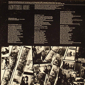 Side Two: Another Side Trk. 1) "I'm a Stranger." Organ and brass lead this lilting, Gospel flavoured tribute to one of the girls that got away, and the band creates an almost orchestral sound, reminiscent of Ray Charles' finest recordings. Lovely sax from long-time BB'er Chris Mercer, and Hiseman's light, busy touch keeps this slow number swinging. Gorgeous. Trk. 2) "No Reply." 'Deezer' present this song alongside the lyrics from 'No Reply' by Lennon & McCartney. Another internet triumph! Co-composer Mick Taylor provides very Hendrixian double-tracked wah wah guitar, Hiseman goes banging on the bongos, John throws in some harmonica, and it's all rather light and bouncy. But who's he ringing? The “freak-out” ending is unexpected. Trk. 3) "Hartley Quits" is Taylor's own contribution, a straight shuffle guitar instrumental, with an axe approach that's still quite Claptonish. It's punctuated by hard hitting brass, and Hiseman really packs the beats in. But wot's it got to do wiv Keef? Trk. 4) "Killing Time" is an insistent, plodding 12-bar, based on a similar piano riff to 'A Hard Road,' with John singing very up close and personal. Background slide guitar gives way to a burning solo, while sobbing saxes repeat the theme. I remember seeing them do this live, and it would really cook. Satisfyingly catchy. Trk. 5) "She's Too Young." “But not for me!” John adds quickly. Crazy drums intro this very uptempo boogie with stabbing brass. John's plainly changed his tune about young girls since he aired his views on 'The Blues Alone.' Singing of his desire for this nameless 16-year old who's still in school, he says "She was born to be loved and I can't wait to bury her down." Steady, John! Trk. 6) The mood of "Sandy" strangely echoes “Jenny,” the single he cut with Green and Hartley. John plays his his own slide on this, with only drums and violin for accompaniment. The sound is very sparse and the effect's spine-tingling.