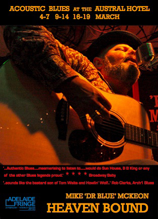 Mike 'Dr Blue' McKeon is a bluesman with a voice like a bear who has been singing and playing the blues for many years. Mike has agreed to write a diary to show us what a bluesman's life is like, the venues he goes to, the characters he meets, his experiences. He sends in chapters of his diary when he's ready. Who knows what adventures he will have.