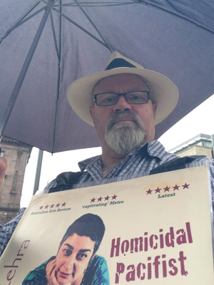 The Edinburgh Festival is many things, to different people. To new performers, it's a chance to showcase your talent, to others a chance to see and share a truly international event. For me, its hard work, but a lot of fun. It's a chance to catch up and talk to people I know on the circuit who I will only see at the festivals. For me seeing Sameena play at the Stand Press night will be a special memory. As too was watching all the live shows at venues as varied as a Yurt and the Dissection Theatre at the old veterinarian college where I watched a giant white rabbit walk in through a swirl of smoke carrying a body bag! I also started (without knowing it at the time), writing the soundscape for the Poetry Army with my good friend Roy Hutchins. Roy is the narrator and long time collaborator of the marvelous poet, lyricist, scriptwriter, actor, magician and activist- Heathcott Williams. While Roy was up visiting us, we started jamming the words from the Poetry Army (now re-named ‘Stalin's mustache'), with some acoustic blues. This has now, after work and development become a sound track to the work and will form a large part of my performing in 2015-2016, when Sameena and I get back from gigging in Australia. But before migrating south for the winter, I have a gig at the 100 Club in London's Oxford Street, one of my ‘bucket list' venues.