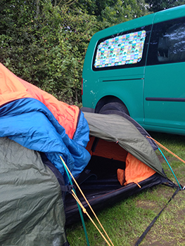 Camping at Barnard Castle The northern leg of my Autumnal touring started with a warm up gig in a lovely pub called The Golden Lion in Barnard Castle. My old blues buddy and the multi award winning Blues Broadcaster Gary Grainger had introduced me to the venue. I played to a lively and very friendly local crowd. After lunch the following day in the Golden Lion, I headed off to Darlington to check out my venue- The Voodoo Cafe. I arrived in Darlington to find that the Cadillac Kings were on the bill. Unfortunately their slot clashed with my gig, so I wouldn ' t be able to catch their set. l know Malcolm Barclay, their guitarist from the Monday night electric blues jams at Aint Nothing But The Blues, in the early 2000 ' s. This was the time when Ian Segal used to be the host. I was put in mind of Ian and his amazing body of work, when I saw a posting on Facebook advertising his latest tour, celebrating 25 years of being out on the road. Here ' s looking forward to another 25 (no pressure!) At the time (2004/05) Malcolm very kindly agreed to play guitar on one of the tracks I had written for Dr Blue and the Prescription. He ended up playing a blinding duet with Dave ‘ Guitar ' Piggott on a version of Hear The Devil Calling. The Darlington Festival was well attended and supported by an enthusiastic crowd, willing to walk between the town square, where the main stage was set up, and the various satellite stages in bars and cafes. My heart sank when the act on before me finished and the venue emptied. I need not of worried as the friendly venue quickly filled up with a new, cheerful afternoon crowd. Darlington ' s Blues festival still retains the enthusiastic support of the local council, a key element in its survival , when so many other local events have been lost to cuts in arts funding. After the gigs in Darlington, I headed up to Edinburgh along the very scenic stretch of the A1 that runs north from Newcastle. I had hoped to pop over the causeway and spend an hour or two on Lindesfarne, but the tide was up so I went and had a leisurely lunch further along the road. I have a standing offer to play in a very cool bar in Edinburgh called Ushers. This great bar found in the basement of the Counting House/Blind Poet/Pear Tree complex on West Nicholson street, boasts a micro brewery. I love playing there, able to combine two of my great loves, beer and blues. On my return I made a start committing to memory a story telling show that I am going to perform at the Wellington Fringe Festival in New Zealand. I previewed the show at the Brighton Fringe Festival this May. It is now called Irish Jimmy. The show includes 4 songs that I have written and includes the single Silent Man. I have some solo gigs booked, as well as a short run of Fiery Tongues (formally Poetry Can Fuck Off), the hour long spoken word piece written by Heathcote Williams, that I wrote the score for as well as perform in. Listen and watch Silent Man on my web site: www.mikedrblue.com Dr Blue Goes Wild Down West kicked off with a bar gig in Salisbury. I had a leisurely drive from Brighton. I had decided to camp on the first night as the weather forecast was sunny. I pitched my tent on a site at the foot of the old hill fort of Sarum. The clear night meant both a sky full of stars and a frost. I don't mind if it gets chilly at night I just throw on my Firin, a Kashmiri wool garment that gives the wearer the look of a hooded monk. It amuses me that if I am observed visiting the shower block late at night it might make the observer do a double take! After setting up camp I had a nap and then headed into town to look for something to eat. Out on the road, eating can end up being a lot of service station sandwiches. I try whenever I can, to find somewhere to get some decent food. This night it was a Turkish /Persian restaurant offering mezze. My Romanian waiter is friendly and attentive. In between courses we discover that we are both in Salisbury for the same reason: Work. The gig turned out to be a double birthday party, a lively party crowd who were up for a dance. It was a small intimate gig, no stage just a space beneath the dart board in the corner of a quirky ancient bar .The only down side of the night was that I was hobbling around, as the gout I suffer from had flared up. Thankfully the pills I carry for such an eventually, kicked in by the following morning, and I could walk and work without the use of a walking stick. Day two was a gentle 60-mile drive to Sidmouth on the south Devon coast. After a late breakfast I was back on the road. Driving through this late autumnal landscape on a sunny day was a joy. I left the brown cattle and fields full of sheep in Dorset as I drove into Devon, climbing the Black Down Hills. The sound of Songhoy Blues pounding on the stereo provides a musical contrast to the rolling landscape . I stop to make a brew in a layby, before heading further south – west, to the sea front venue – Marine. Sidmouth was blustery and chilly. I Had some amazing ice cream before setting up my gear on a surprisingly big stage with an awesome PA. Marine at Sidmouth The venue owner had offered to feed me so I was Keen to get there early and get set up as I would like to eat (and digest) before I go on. On arrival I was informed that it was a later start than originally agreed. The venue is a sports bar and there was an England game on. Great news. It meant I could have a beer and enjoy my supper at leisure. The bar is a long room with a pizza oven at the back. Supper was a fresh and tasty, chicken, mushroom and muscaponi pizza. Lovely gig. Busy busy night. A load of people stayed after the England qualifying game. Happy punters, and a very happy owner, the football crowd joined the regulars, mainly young hotel staff out on a Friday night. They want me back – job done. Having seen the weather forecast I decided to head north overnight. A storm was forecast. I had to balance up my concern about driving in storm