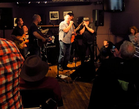 Dr Blue with Dago Red from Italy Playing harmonica at the Dundee Rep. Giuseppe spoke of his enjoyment of being in Dundee. The change in temperature had been a bit of a shock though, when the band had left Italy it was 40 degrees, Dundee was a mild 13! Giuseppe said that he was enjoying playing in Scotland and sharing the singing with the talented Paola. The band was started in 1998, originally a three piece which has grown to the current line up of 5. The band had come to play in Yorkshire three or four years ago, and picked up a gig in Dundee at short notice, and have been coming back ever since. The musical influences of the band are very eclectic, ranging from Prog Rock, Funk, Progressive Jazz and of course Blues. The current bass player is a choir master. Giusepppe himself likes to listen to blues and folk music, both influences very clear in both their recordings, as well as the Dago Red live show. Giuseppe studied English at university in addition to growing up listening to music performed in English. Giuseppe felt that the UK has had an important role in maintaining the interest and influence of the Blues internationally. Giuseppe argued that if the British had not taken and developed the blues in the 60's, that the Blues would not be as big and as influential as it has become. This put me in mind of a great moment in the history of the blues. When the Rolling Stones first went to America, they were asked what were they looking forward to doing in the States, and they replied they wanted to see Muddy Waters. The interviewer asked, “where was that”! For me this interview was the end of my Dundee festival. Sameena and I went off to get something to eat ahead of an early start back home, on the following morning. I want to say a big thank you to Bob, and all the organizers for pulling off the near impossible. Despite all the logistical nightmares, the challenge of working with many, sometimes antagonistic agencies, and the weather, once again the Dundee Blues Bonanza was a success. Happy 18 th Birthday Dundee Blues, I look forward to visiting you again sometime soon. On Wednesday of that week I caught up with Jimmy C at the Coach and Horses in London and had a chance to talk and ask him about his Dundee Festival and playing in general. Jimmy was in good form having opened the Blues Jam with a stomping great set (link below): http://www.coachandhorsesbluesjam.com/home.shtml#nogo Jimmy said that this years' visit to Dundee was his fourth, each time a ‘notch higher' on the rosta. This year he was able to play 3 gigs with the band and a couple with his keyboard player. Jimmy is a busy bluesman playing at least 3 times a week, which means that he can keep his head above water financially. Jimmy is off to France soon where he will be playing in places like Djon and Bordeaux. Jimmy likes to go over to France once or twice a year, enjoying the touring and the chance to meet new people and to play different venues. Jimmy, a hard working musician is keen to spread and develop his ‘brand' of blues, building, at the same time his profile and getting ‘himself known'. Jimmy's musical influences are no surprise, if you have listened to his dynamic set. Jimmi Hendix, T Bone Walker and Albert King are his big three. But “ it was Jimmy Hendrix first”. Jimmy said that when he heard Jimmy Hendrix he discovered Albert King, and when he listened to Albert King He heard Jimmy Hendrix. It was T Bone Walker, that had inspired him, to be a front man of his own band. I am getting ready to head off north again to play at the Maryport Blues Festival (Cumbria). I had a short set on Saturday at a local festival at Fairlop Waters (Essex). I have recently been talking to a couple of musicians who may be joining me on the next album, which Sameena and I are about half way through writing. The album will have to wait as I am due at the Edinburgh Festival straight after Maryport. In Edinburgh I will be gigging, busking, doing a spot of promoting for Sameena's show as well as possibly working some shows as a sound tech. The work of a jobbing Bluesman is never done!