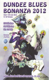 The journey to Dundee was uneventful. We checked into our hotel and drove down to the Friary, the host venue of the International Extravaganza Event. I was opening the night and the festival. Dago Red, an Italian band who recently won the Italian Blues Challenge, were on stage finishing their sound check, as I walked into this barn of a place. The Friary boasts a large stage, set high above an ‘old school' sprung dance floor, clear evidence of its former life as a dance hall. The organizing committee were obviously expecting a good-sized crowd. I kicked off the night with an acoustic set and received a warm welcome from the lively crowd. Bob Hall a keyboard playing local-legend, who has played with many of the greats, and was himself, an early member of the Groundhogs, joined me for my encore. We left the crowd warmed up, with an enthusiastic version of the Torrens River. Bob Hall stayed on stage and treated us all to a rousing romp through the world of boogie woogie and blues piano. This was a man of with a 24-carat blues pedigree, having played with the likes of Savoy Brown, Alexis Korner, Peter Green, and Spencer Davis. The list of the American greats he played with, reads like a whose who of the blues, It includes: John Lee Hooker, Howling' Wolf, Jimmy Witherspoon, Lazy Lester and Eddie Clearwater. Following Bob Hall were the fabulous Dago Red, they entertained us with their own brand of acoustic blues, teasing us at the end with a laid back version of ‘I've got my Mojo Working'. They invited me to join them later on Sunday, to blow some harp with them at a gig over at the local Repertory Theatre. Dago Red took the night up a gear or two, warming the crowd further, leaving the stage with the audience roaring for more. Next up, Deitra Farr, considered by the Living Blues Magazine as one of Chicago's ‘top vocalists', took to the stage and sung up a storm. Deitra sang with a deep, soulful throaty style, clearly influenced by gospel as well as the blues. This multi-talented artist (poet, song writer, singer and painter) dominated the stage, chatting to the audience in between songs, obviously enjoying every moment. A great singer and a great lady. Sadly exhaustion drove me to my bed, and I missed Kat and Co, but I caught the start of her set on the following evening. Saturday morning was a grey one, much like the rest of this very wet summer we are having. We headed into town to Blues HQ, located at the top of the marble stairs in the old Chamber of Commerce. I had some business to sort out, signed the festival guide, autographed a guitar, which was to be raffled off over the weekend, leave some CD's and pick up a map of the venues. We left to the sound of young service men and women being put through their marching paces outside the high school in the rain, Today is Armed Services Day. I popped into my first venue to check out the availability of power points, sight lines and access. With ‘Trail gigs', at festivals, it's always worth checking out the venue before a gig. If it is one that usually hosts live music then there is not usually a problem. My first venue was well set up, so it was off to the ‘Ketchup', one of the restaurants offering discounts to performers, for lunch. On the menu were such delights as Who Killed Bambi, a Bangkok ' Alec' Salmon or the Jumping Jack Flash. I chose a Zorba The Greek (Lamb burger with goats cheese)- it filled a hole. My first gig went ok. The audience in this rather austere wine bar, was a mixture of committed blues fans and, a younger ‘professional' crowd out on the piss. We headed back to the hotel for a snooze, before I went out to have a look at a few venues and listen to some blues. My first stop was the unlikely and acoustically challenging East Chambers. Werner Linden from Germany, fronting the ‘Flamming Statman', was playing with my old musical buddy Terry Duggan on bass. Werner is a regular visitor to the Coach and Horses Jam in London. Werner was playing in front of the stained glass panels of what I suspect was an old committee room. The audience were set up at quite a distance from the musicians, which did not help the atmosphere. Despite this, Werner rose to the occasion and treated us all to a good show and a Buddy Guy inspired walk- about through the audience, smiling and soloing as he walked among us lesser mortals I was watching Buddy Guy a couple of years back at the old BBC theatre in Shepherds Bush, when he went on his famous walks through the audience playing his guitar. I had gone up to the bar to pick up a couple of drinks when I became aware of an increase in light around my immediate vicinity. I turned round to be momentarily blinded by a torch, held above the head of a black suited security guard, standing behind the great man himself, soloing in front of me. I smiled…………, Buddy nodded…………., I offered him a drink, he said, “No son, I'm working here”. Back in Dundee I walked over to the Old Bank, now a busy city centre bar. I found punters spilling out of this packed venue onto the pavement. Inside, Jimmy C was delivering a master class of rocking , electric Chicago blues. The place was rammed. As Jimmy banged out a stomping version of Johnny B Good, people were, dancing, shouting and jostling to get a view of the grinning genius. Jimmy C is one of the most cheerful looking Blues Men on the circuit; he really does look like he is having a ball. When he looks towards the audience and smiles that joyous smile of his; you think he is smiling at you. He's a bit like the Mona Lisa, that smile of his, follows you around the room.