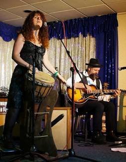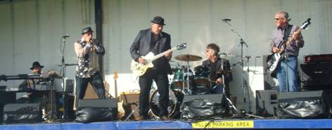 MARYPORT BLUES FESTIVAL 2012 As the British Blues Archive rep for Lancashire, I like to keep in touch with the blues scene throughout the country. I am a great supporter of 'Keeping Live Music Alive' and support local bands, artists, and venues who have a passion for 'The Blues' via my facebook website, Lancashire Blues Archive I have, over the years, been interested in all genres within the 'blues' spectrum...from acoustic roots to rock and beyond. I see a new generation of British Blues artists emerging, which is refreshing and hope this will continue to keep 'the blues' alive. Travelling out of the Lancashire area and up into Cumbria, for one of the NW's best Blues Festivals, we found a 'New Look' festival in Maryport this year. With the disappearance of the 'big marquee', and the introduction of a concert venue 'The Wave' as the 'main' stage, it was certainly a different experience. With plenty of 'trail' venues in the pubs and clubs, it was difficult to get to see all the bands and artists on the trail or the main stage, so it was a bit of a 'pick 'n mix'. The first band to play at the festival on the Friday evening, were Rabbit Foot from Sussex - a fresh and unique band for the 'blues' experience. With African drums to provide the driving rhythm, they are young, with a new style of blues (they call 'swamp boogie' blues), which is refreshing... and the 'lady' in the band, Carla Viegas, has a sensational voice. Catch them if you can. Rabbit Foot Next, we managed to catch the Junkhouse Dog Blues Band - a harp driven band from Manchester. Luke 'Junkhousedog' Shaw gave an energetic performance and the band provided a mix of 'swing' and 'Chicago' style blues giving a 'high energy' feel. A great band and performance well recommended. Luke 'Junkhousedog' Shaw An up and coming young blues/rock band, the Mentulls , from the North East, were privileged to play on the main stage on Friday evening. The performance that they gave would make you believe they were older than their years, with the standard of musicianship equal to those who have been on the circuit for many moons. Definitely a band to look out for in the future! Andrew Pipe of the Mentulls On the trail and the last band for us on the Friday, was Babajack . playing acoustic, roots blues, they provided an exciting and refreshing change to the standard 'electric' band. Becky Tate sings from the heart and pounds the rhythm on the kahon and bongos and Trevor Steger plays a mean slide on his home made wine box guitar. I'd definitely put them on my 'must see' list! Babajack Happily the sun was shining on the Saturday. We headed down early afternoon to see Mike (Dr Blue) Mckeon (British Blues Archive writer of 'Diary of a Blues Man') for an acoustic set. Mike writes most of his own material, and many songs are linked to 'his journeys'. It was nice to catch up with a fellow 'Archiver'! Mike McKeon and me! Next on our list was a catch up with a favourite band of mine, Fuschi4 from Manchester, an Italian/British combo fronted by Paolo Fuschi. They played to a packed house with a mix of blues and funk with a hint of jazz for good measure! To me, they seem to get better each time I see them. Superb guitar work from Paolo and the young Tim Moscrop and exceptional bass playing from Dave Lloyd, while Adam Dawson provided the driving rhythm on the drums. Just watch this space, I think we'll be seeing a lot more of this band! Fuschi4 Later that afternoon we headed down to the outside famiy stage on the trail to see Cry Baby and the Hoochie Coochie Boys . Great harmonica playing from Rob (Cry Baby) Wilkinson, and the band provided a fun and lively set with a rockin' eldge!! Cry Baby and the Hoochie Coochie Boys We tried to catch Hooson , as we headed back into town, but the pub was already packed to overflowing when we got there. We were, however, able to hear Jenna Hooson from outside, blasting out her individual blues/soul style. Hooson Later, at the Wave, we caught some of the Todd Sharpville Blues Review set on the main stage. A well rehearsed young blues man who plays a 'mean' guitar and has a growing reputation as a song writer. We also caught one of his 'guests', acclaimed American blues man Nick Moss, playing classic Chicago style blues. Todd Sharpville I would have liked have made the Paddy Maguire Jam Session on Saturday night. From what I have heard it was a great success... as it was last year... bringing in a mix of musicians from the trail together for an exciting evening of music. Well done Paddy, yet again!! Paddy Maguire and me! Sunday brought an exciting start to the day with the Russ Tippins Electric Band . On the 'rock' side of blues, Russ's guitar playing is in a class of its own. The band played a very tight set with some self penned work and some covers. Jenna Hooson of Hooson made a guest appearance, which was the 'icing on the cake'...... boy, can that lady sing!! A great way to spend a Sunday afternoon! Russ Tippins and Jenna Hooson We headed off for our final evening, to the Wave. Young Ben Poole , a superb guitarist and his band, played to a 'quiet' audience in the Wave auditorium. (the acoustics of the venue are good, but it has the feel of a doctors surgery when it's quiet!) Ben, a singer, songwriter, wowed everyone with his playing and came into the audience, to the delight of many. Lots more to come from this young man! Ben Poole and his band Next up was Marcus Malone , a charismatic blues/soul singer. Hailing from Deroit, he has now made his home in GB. He encouraged the audience to get on their feet for a 'boogie' with some great music. Marcus Malone and me! The final acts on the main stage were Chris Farlowe , Cliff Bennett and the New Amen Corner . A great set and enjoyed by all, Chris can still belt out the music and was well supported by the band, A memorable evening. Chris Farlowe, Cliff Bennett and the New Amen Corner All in all a great festival, so well done to the Maryport Blues committee. There were some iss